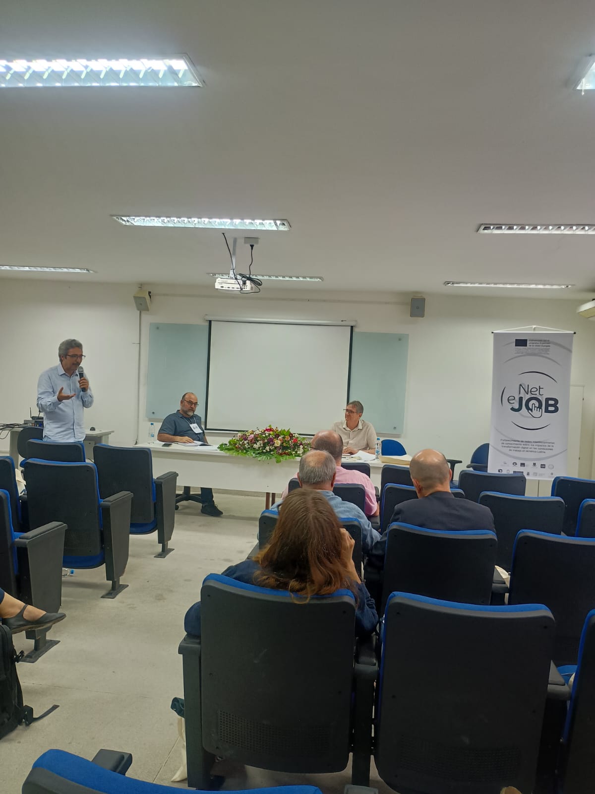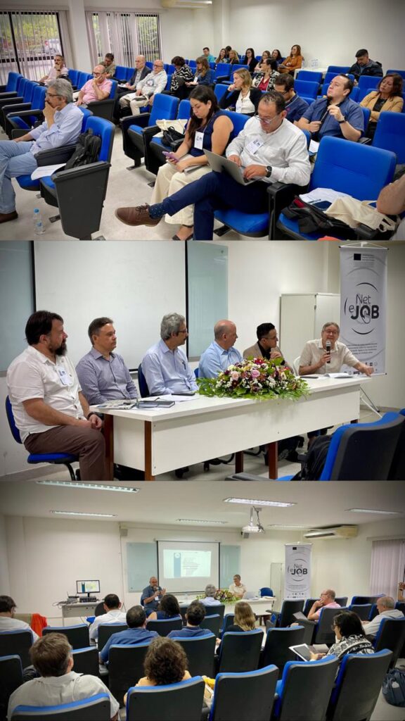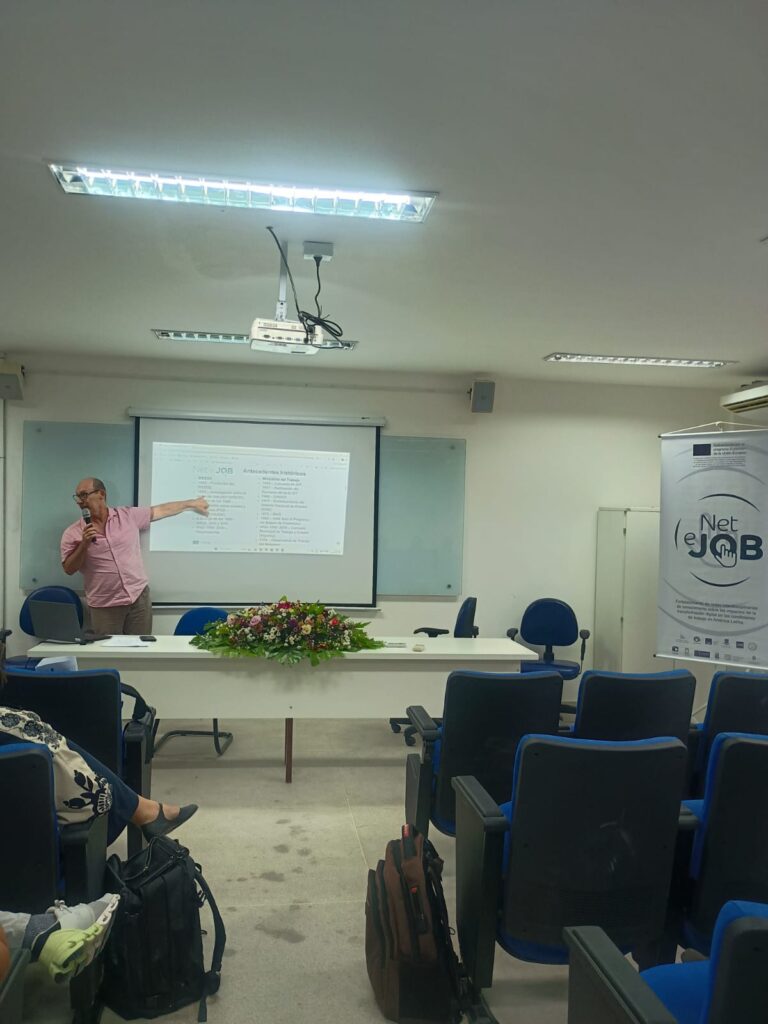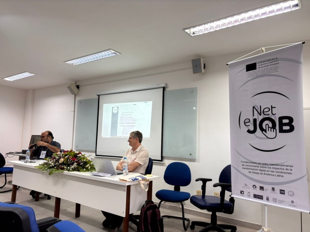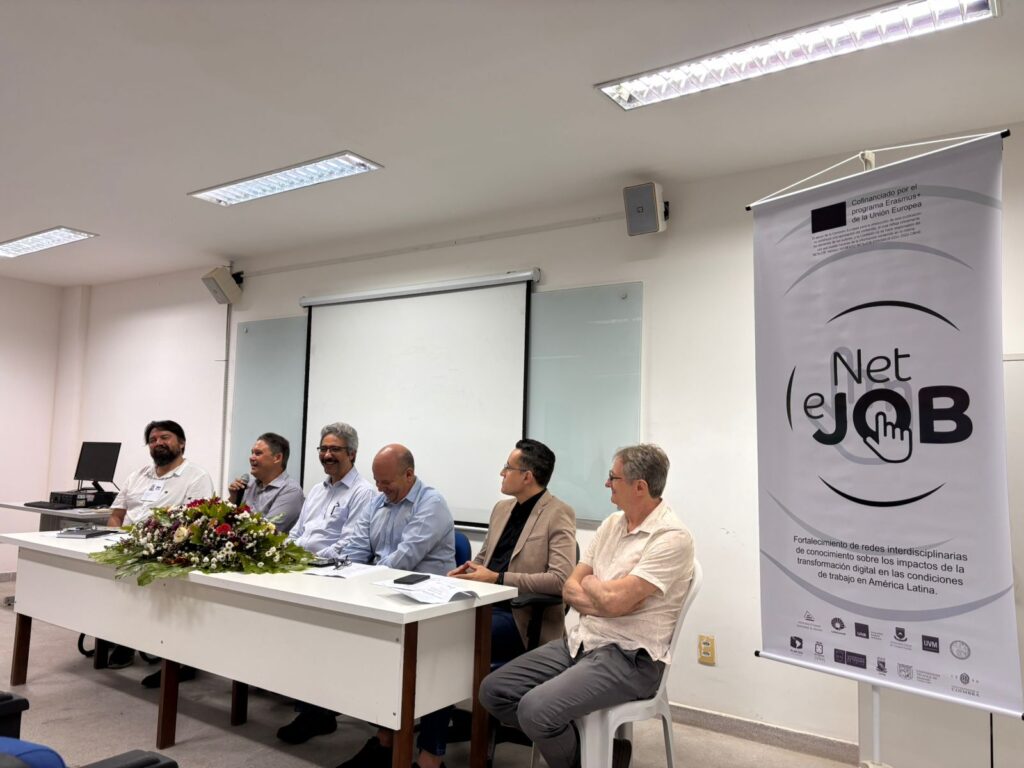 La jornada se inauguró en el Salón Auditorio del Centro de Ciências Sociais Aplicadas / Universidade Federal da Paraíba (UFPB). El evento se enmarca en el proyecto ERASMUS+ NETeJOB, “Strengthening interdisciplinary knowledge networks on the impacts of digital transformation on work conditions in Latin America”, cofinanciado por la Unión Europea y coordinado por la Universidad Viña del Mar, Chile.